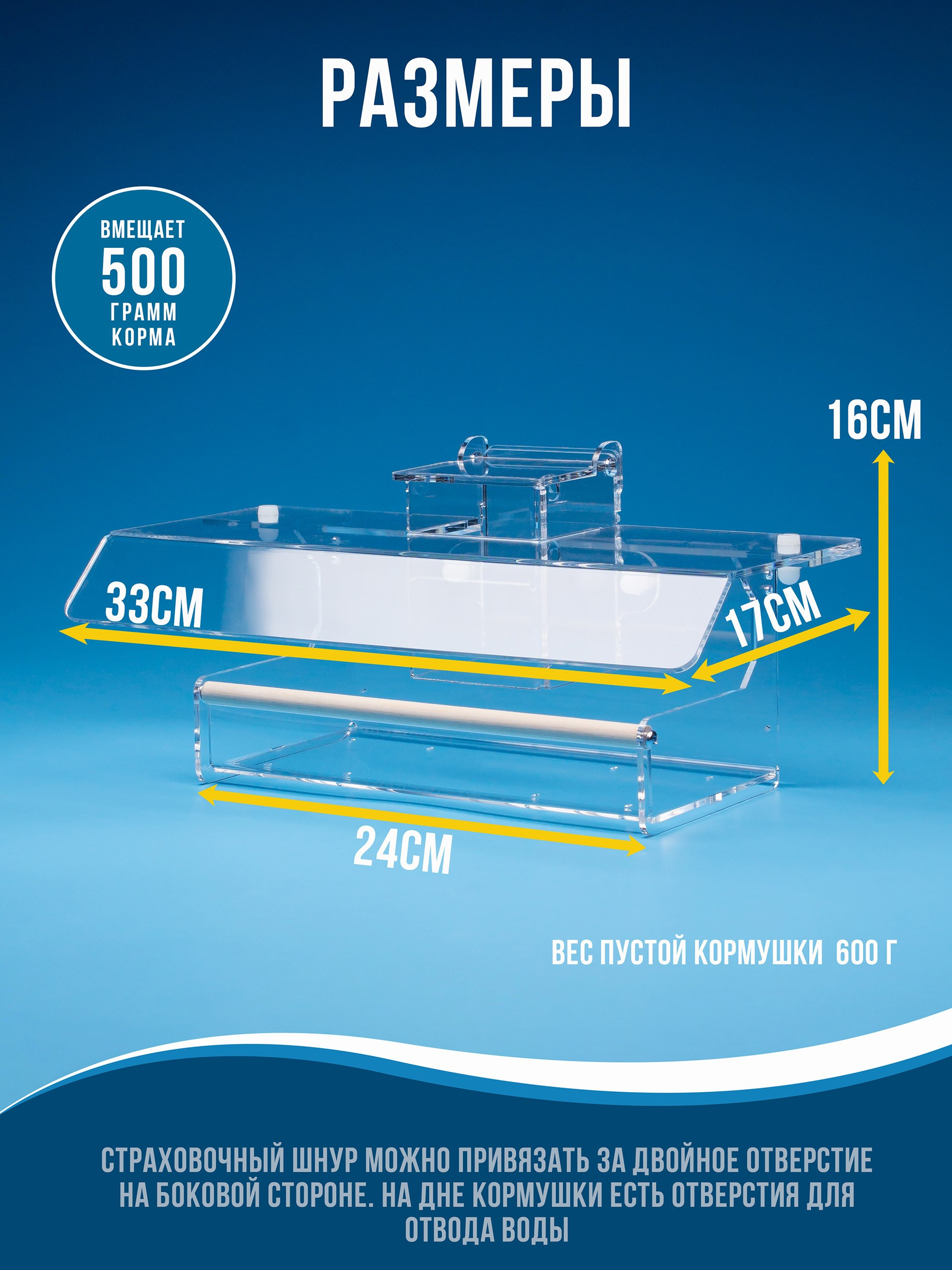 Вмещает до 500 грамм корма