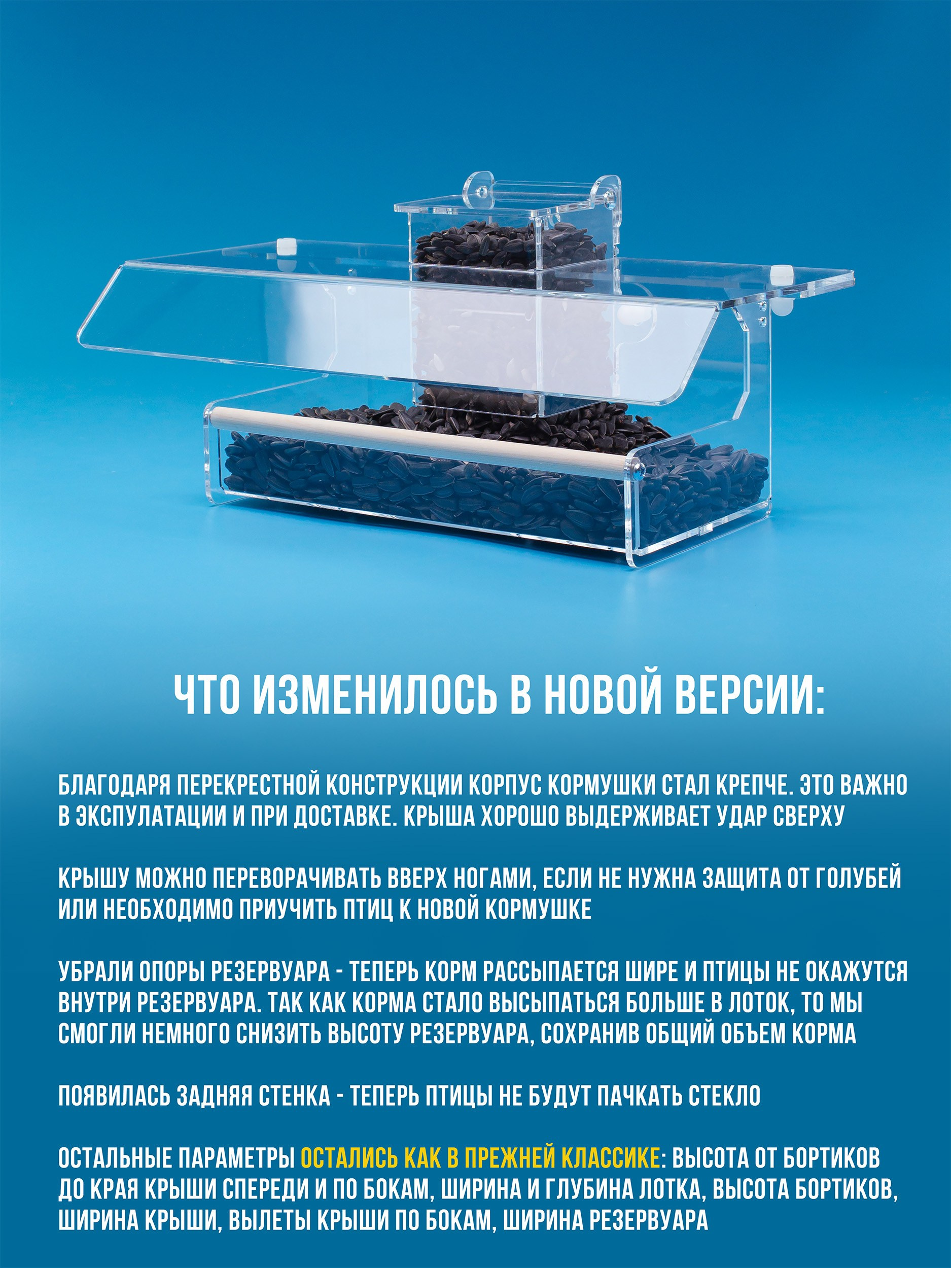 Мы усовершенствовали нашу модель кормушки КЛАССИКА. Теперь она называется КЛАССИКА ПЛЮС.